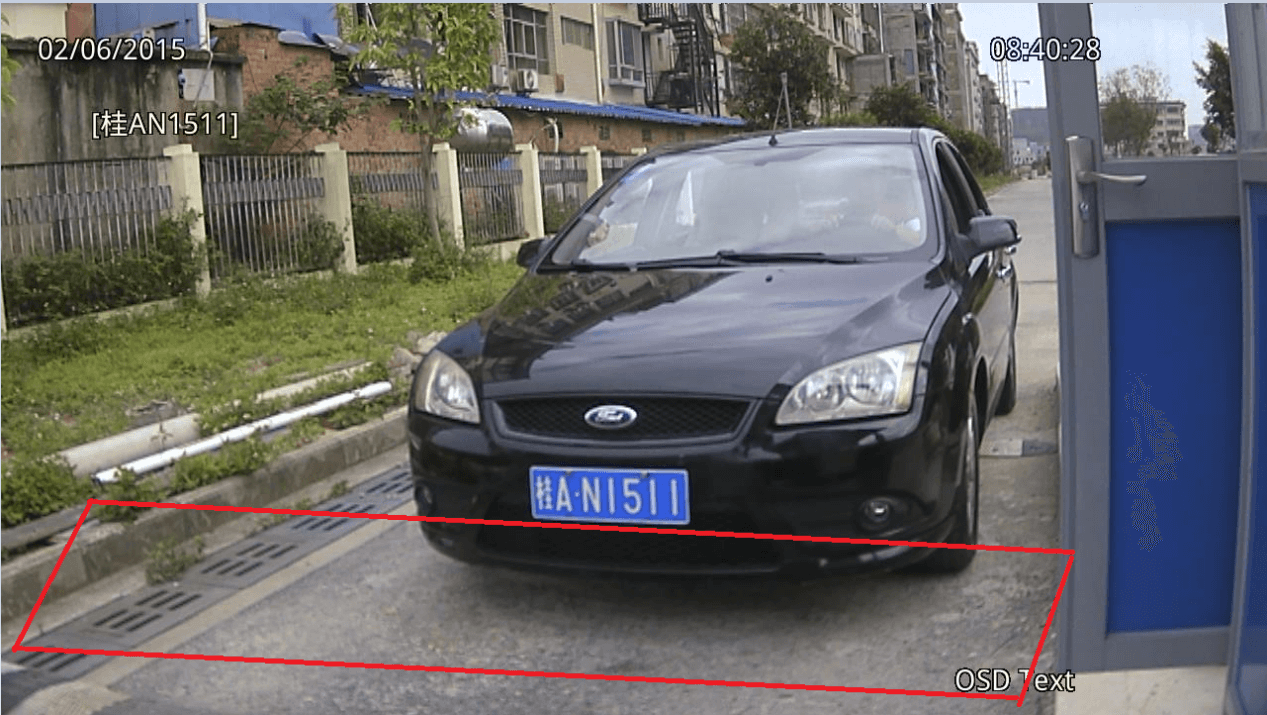 識別區域要把車牌在畫面上的有效運動范圍都包含進來. 注意:所有現場都必須畫上識別區域! 如圖: